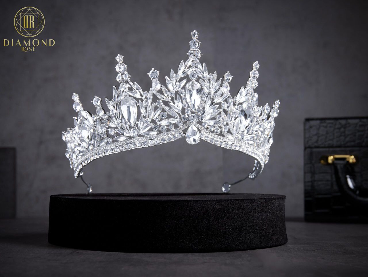 ميِّزي يوم زفافك بهذه التحفة الفنية الأنيقة والفاخرة! تمايلي بين صديقاتك بكل زهو وفخر كالملكات الجميلات من عالم الأفلام! هذا التاج مرصَّع بكريستالات متقنة، متلألئة وبأحجام متنوعة، وحجر كريم مضيء على شكل دمعة. تميزي بإطلالة كلاسيكية، برَّاقة وخلَّابة والتي ستجعل الجميع مذهولين بجمالك!