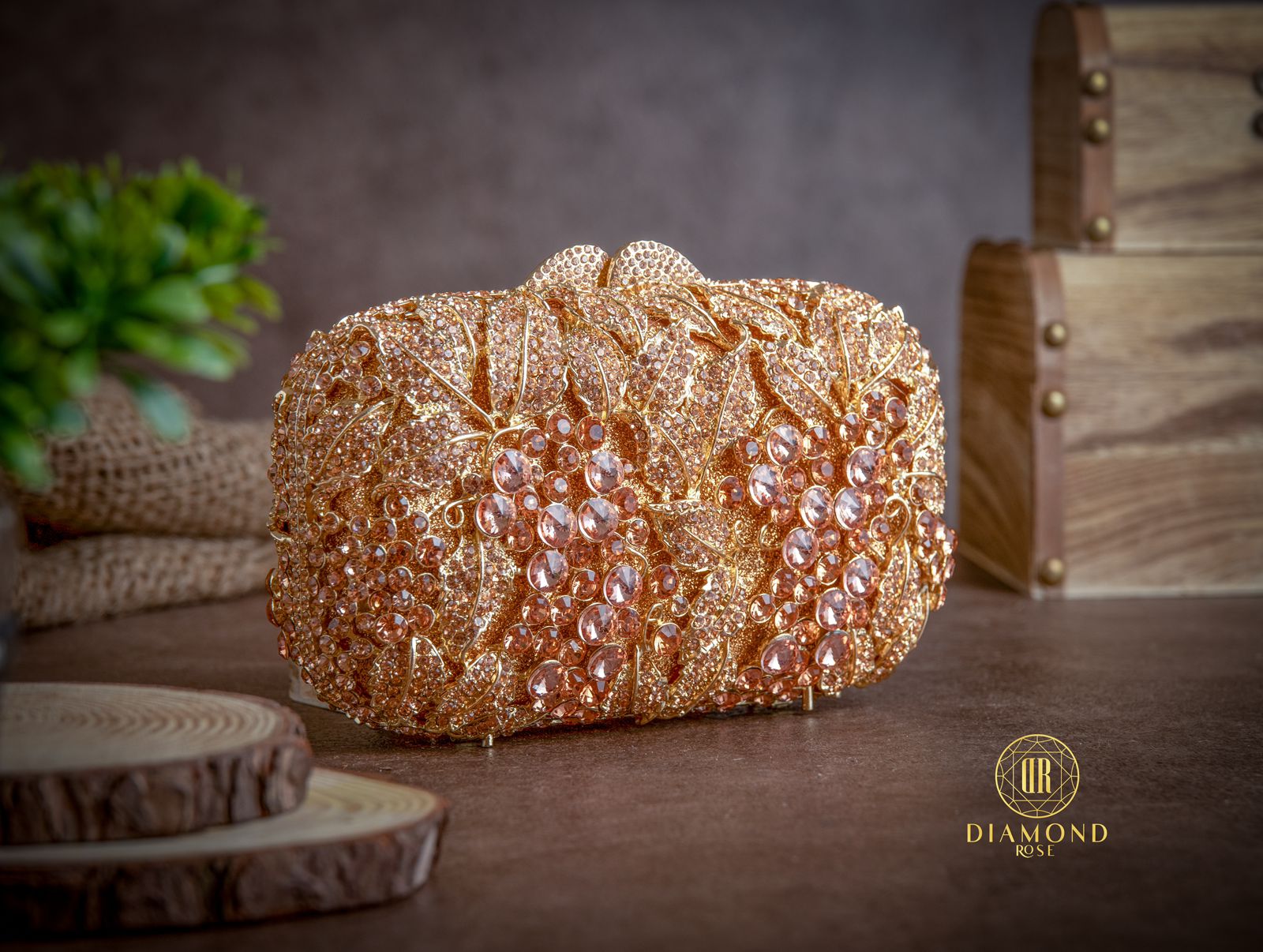 This treasure awaits the touch of a queen to adorn her with elegant allure and grace. Its surface, embellished with intricate leaf patterns, shimmers like golden sun threads, creating a celestial dance of sparkling lights. This clutch is a symbol of sophistication, making you the icon of regal elegance…